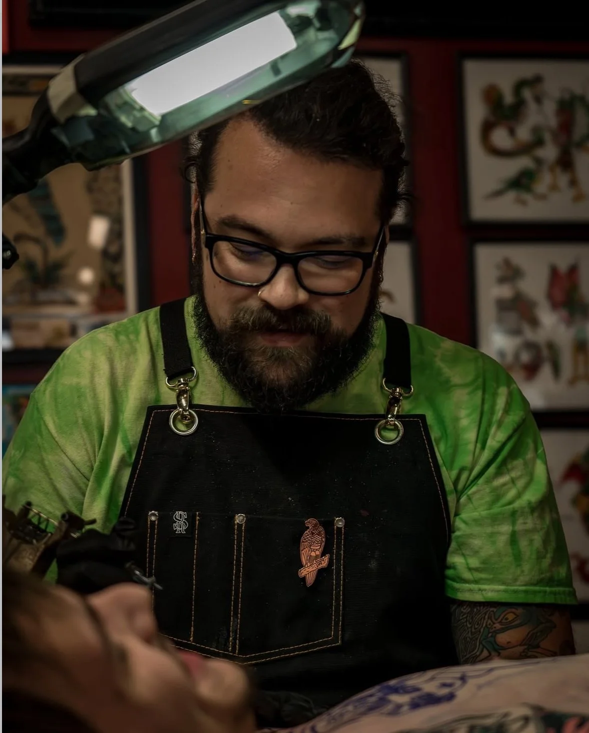 With over a decade of experience, Spicoli has built a reputation tattooing across the nation. He got his start in Dayton, and now calls Sacred Hand Tattoo Society in Columbus, Ohio, home. While his work often features a strong traditional influence, he's also an incredibly versatile artist. Spicoli enjoys working in all styles—from fine-line details to intricate realism—and collaborates closely with each client to bring their vision to life.